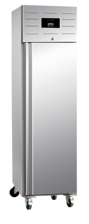 Wąska chłodziarka G-line została zaprojektowana z myślą o kuchniach o dużym natężeniu ruchu. Elastyczność zapewniają jej mocne kółka, a trwałość obudowa ze stali nierdzewnej. Wyposażona jest w regulowane półki i przystosowana do pojemników GN1/1 Gastro Norm. To produkt zdecydowanie wart swojej ceny.