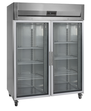 Seria chłodziarek szafowych RK-G z 1 lub 2 szklanymi drzwiami i regulowanymi półkami w wymiarze GN2/1 została stworzona z myślą o profesjonalnych kuchniach. Urządzenia wykonane są z wysokiej jakości nierdzewnej stali klasy gastronomicznej SS304. Postawione są na mocnych kółkach usprawniających ich przemieszczanie oraz czyszczenie. Zawartość pozostaje świeża dzięki układowi chłodzenia z funkcją wentylacji i możliwości ustawienia temperatury za pomocą cyfrowego termostatu.