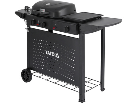 Unikalny na polskim rynku, funkcjonalny grill gazowy 3w1 YATO Asahi. Produkt umożliwia klasyczne grillowanie na emaliowanym ruszcie, grillowanie na żeliwnej planchy (płycie) oraz gotowanie na palniku bocznym potraw w garnku lub na patelni. Łączna moc wszystkich czterech palników to aż 11 kW. Dodatkową zaletą grilla jest emaliowana kratka podgrzewająca, otwieracz do butelek oraz 3 haczyki na akcesoria.