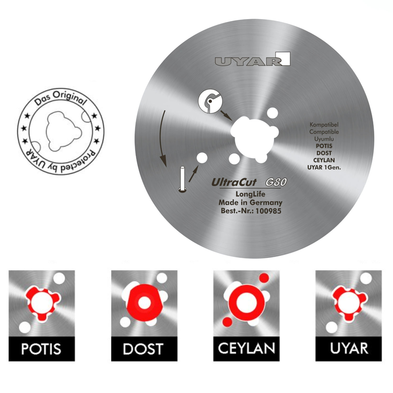Ostrze gładkie 80mm, oryginalne, UYAR UltraCut G80 LongLife (2 gen.)