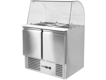 Stół chłodniczy sałatkowy o wymiarach 900 x 700 x 850 mm ma pojemność komory 240 L. Przeznaczony jest do przechowywania żywności w zakresie temperatur +2~+80C.