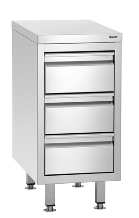 Nie czekaj na więcej miejsca! Z trzema pojemnymi szufladami, które można całkowicie wyciągnąć, zyskujesz doskonały dostęp do przechowywanych przedmiotów. Każda szuflada ma maksymalną nośność 50 kg, co pozwala na przechowywanie nawet ciężkich akcesoriów kuchennych czy narzędzi. Dostosowana do formatu GN, szafka idealnie nadaje się do profesjonalnych kuchni oraz gastronomii.